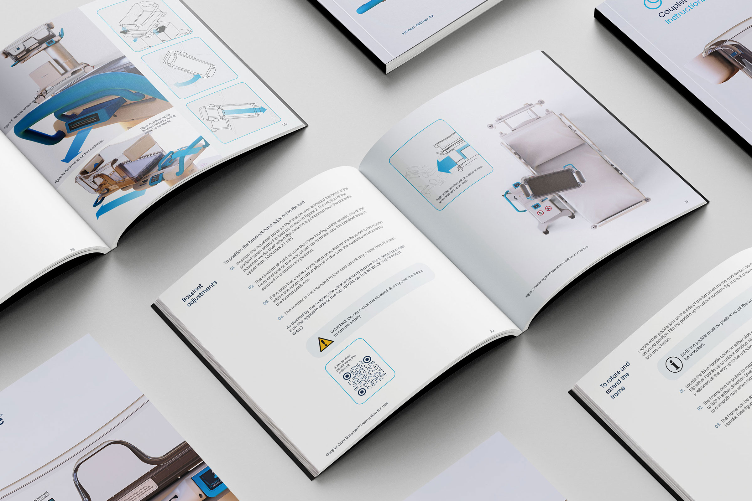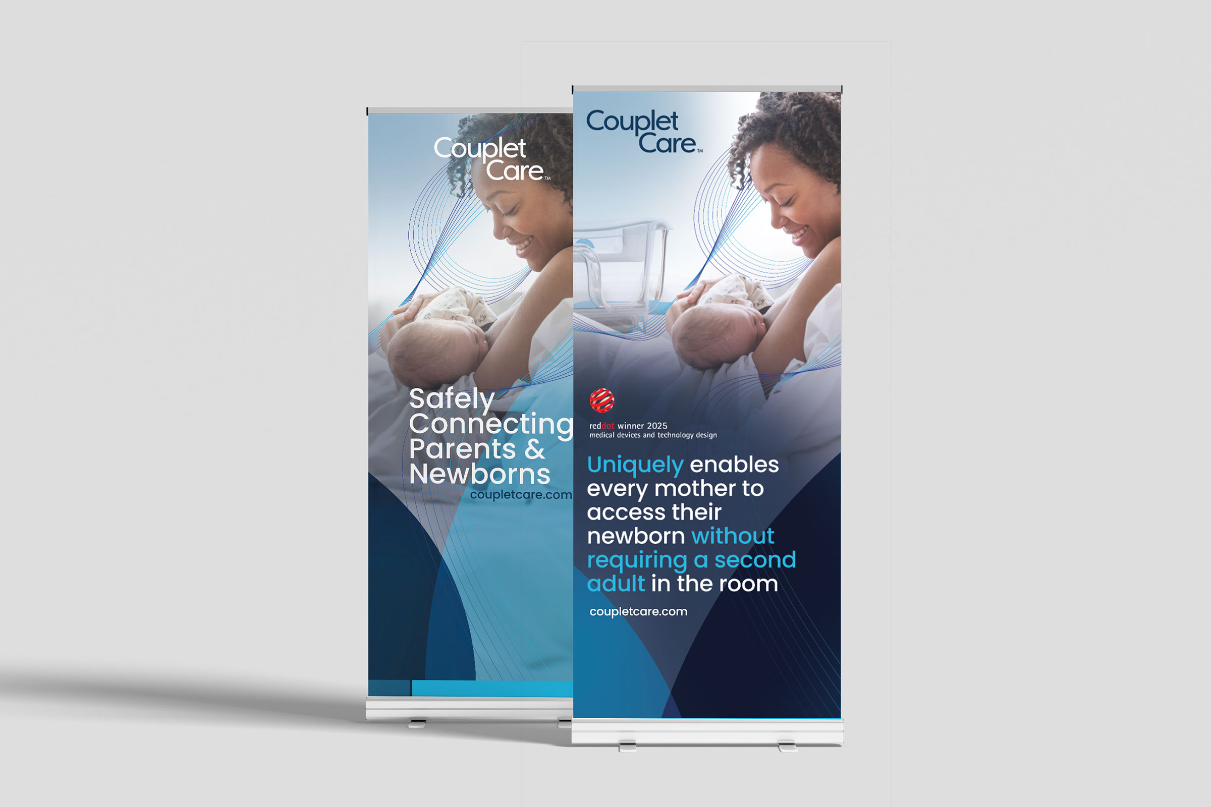 Couplet Care, Inc had developed an innovative, empathy-first bassinet ready for commercialization, but needed a professional brand presence to match the quality of its product and connect with diverse audiences—hospital decision-makers, nurses, and parents alike. The challenge was twofold: first, to create a compelling brand identity and website that would introduce Couplet Care, Inc to the world; and second, to design compliant, on-brand visual assets for a regulated medical device company—from controlled IFU labels to event booths—while maintaining consistency across every touchpoint.