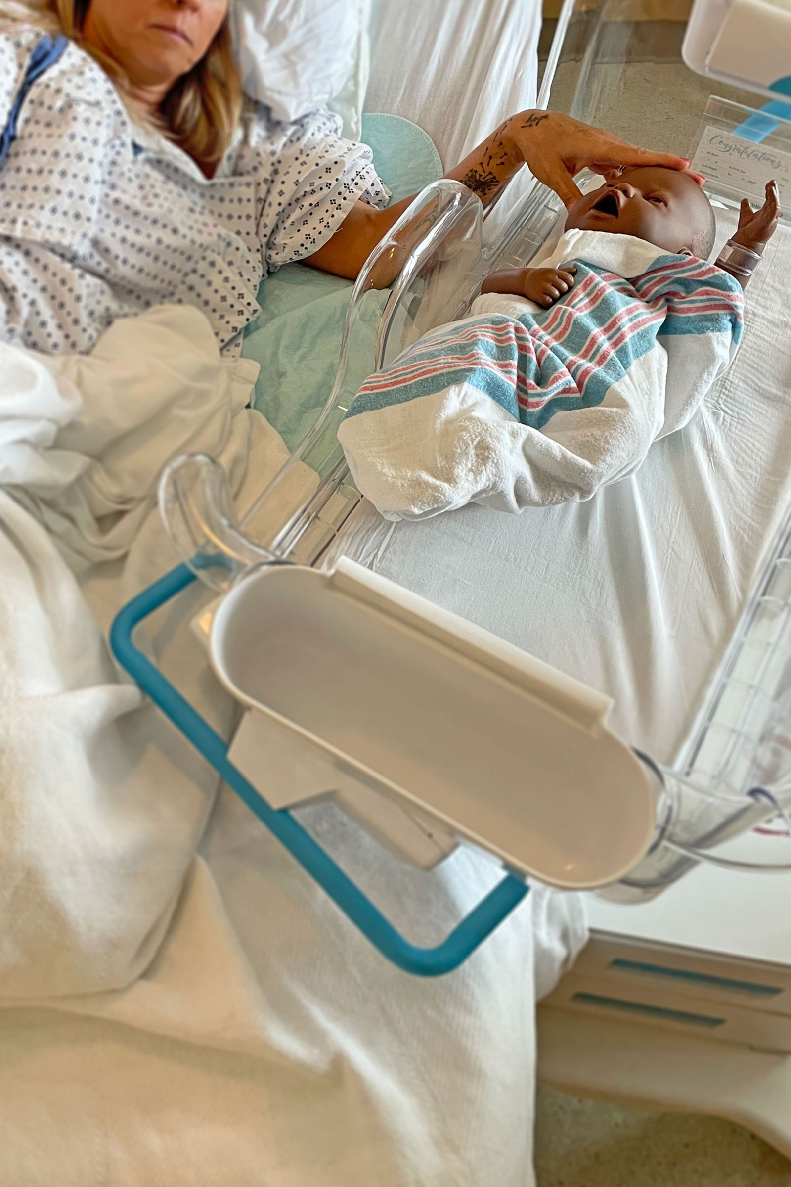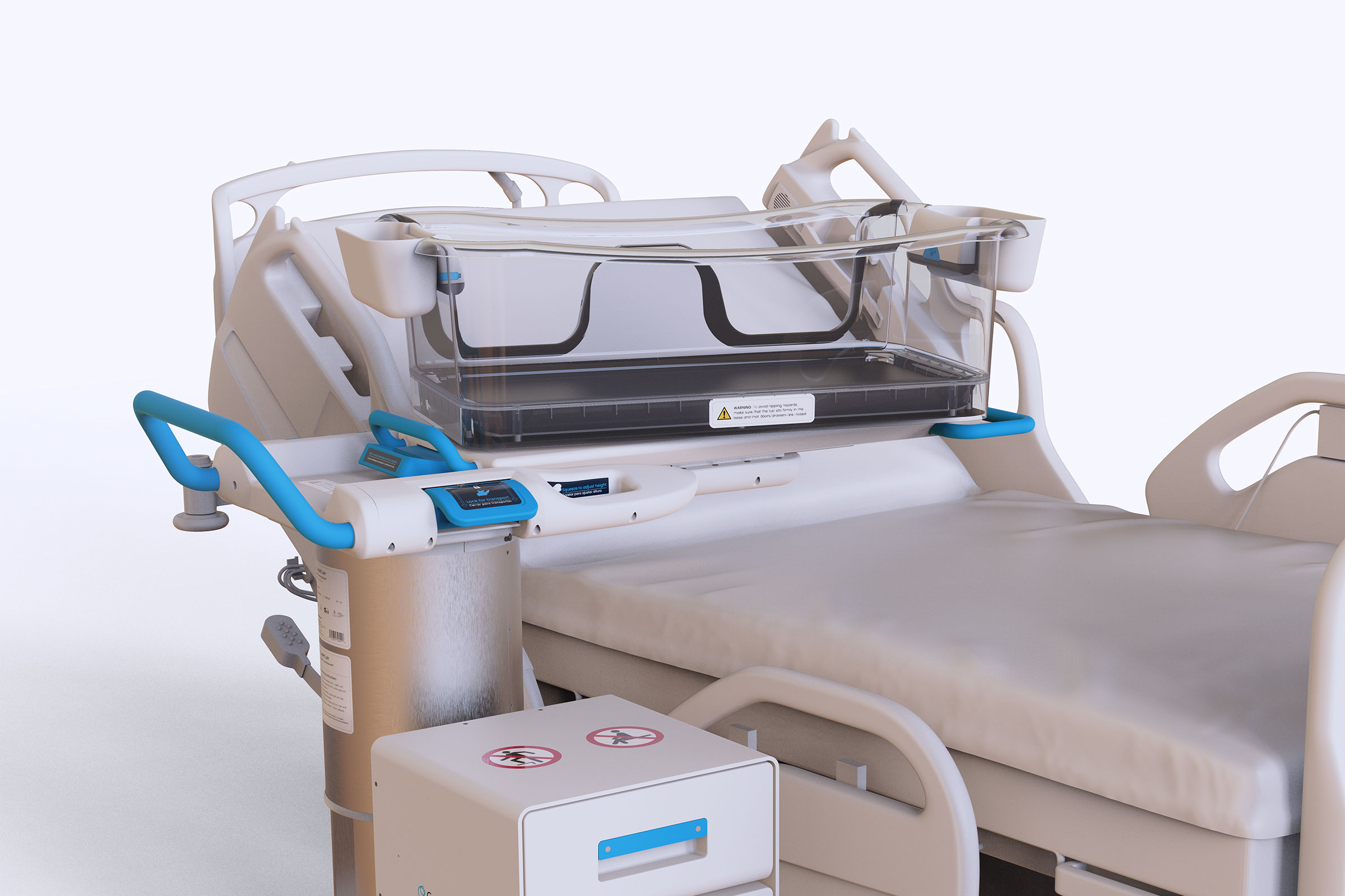 Traditional hospital bassinets have rigid side walls that are too high which prevent mothers from safely reaching their newborns. This creates dependency on nurses for basic maternal-newborn interactions—feeding, comforting, bonding—at a time when mothers need autonomy and to be able to recover.
