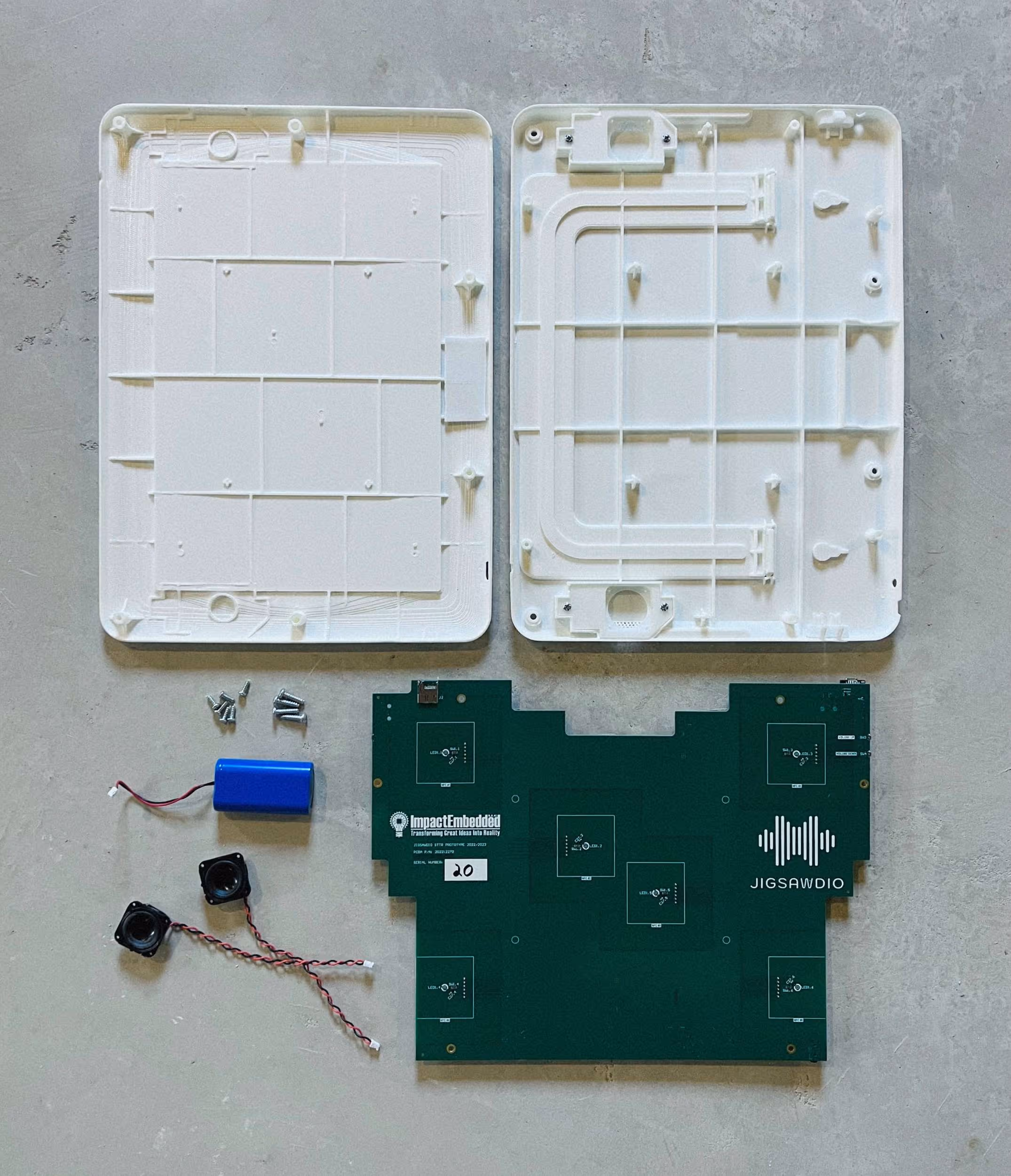 After multiple rounds of concept sketches to define the overall form of the product, our design team jumped right into CAD to start building out the audiovisual jigsaw puzzle enclosure. Throughout this period, there was a close collaboration with Impact Embedded LLC, who played a significant role in the electromechanical development of the product, enabling the incorporation of the audiovisual feature. With good communication, we were able to make sure the design was suitable for the needs of the electrical components without losing the overall aesthetic that was chosen by Jigsawdio. Our designers were able to visualize the design, test its functionality, and make modifications before the prototypes were manufactured.