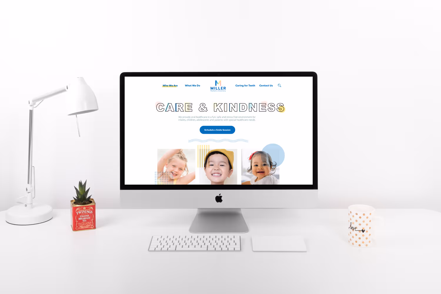 Dr. Miller approached Trig for a brand refresh for her pediatric dental practice that would capture her vision for a fun-filled learning environment designed for children of all ages. She and her team are specially trained to work with young children and children with special needs and handle every interaction with each child with the utmost empathy and care. They believe this empathy creates a safe environment and encourages children to develop healthy dental hygiene habits that will last a lifetime. It was important that we crafted a brand that mirrored the Miller team and was friendly, approachable, promoted a sense of safety and security, and inspired boundless confidence.