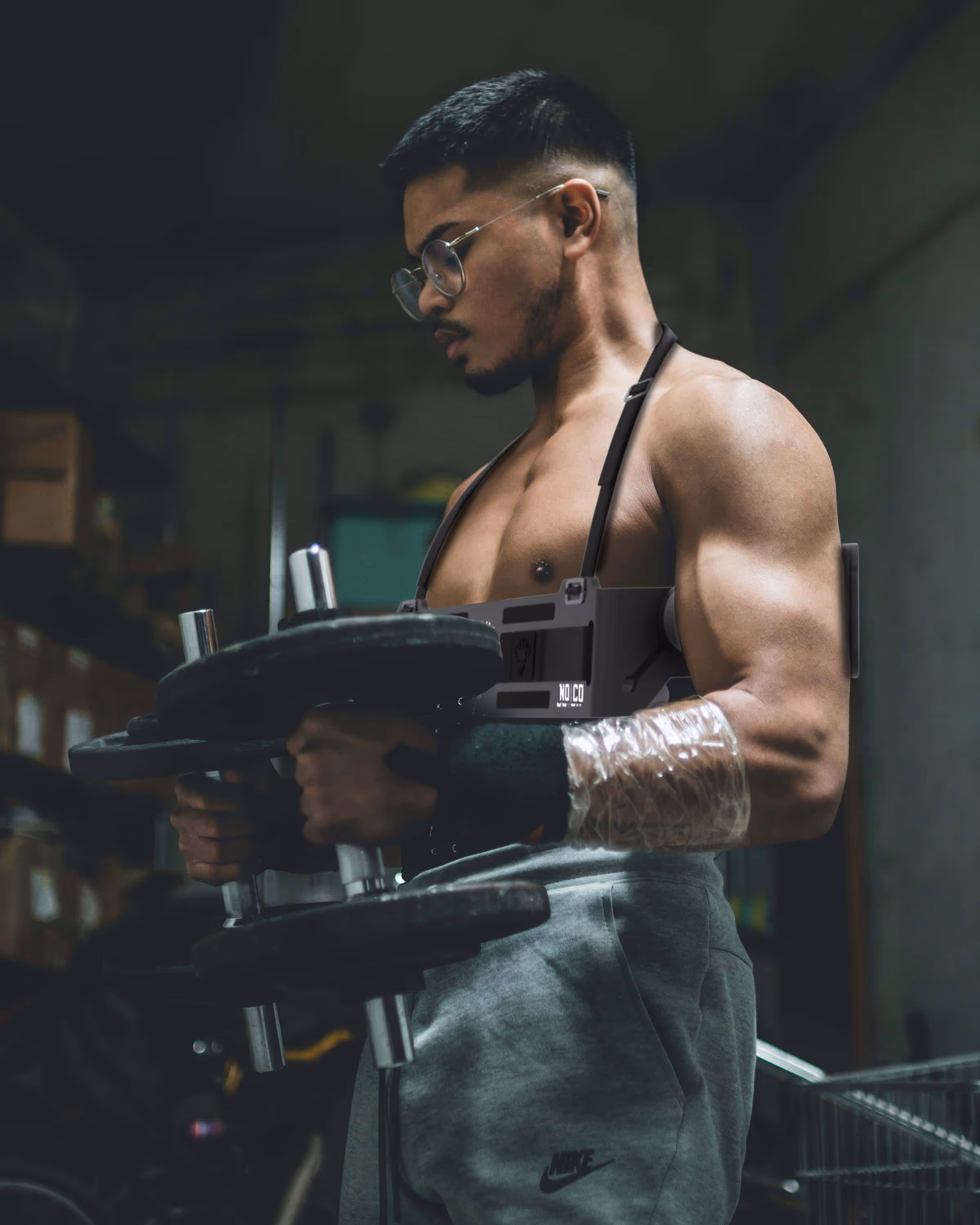 First came the idea that the humble and celebrated bicep isolation brace, originally called an Arm Blaster, only used for curling weights in a standing position, could offer a richer workout by facilitating additional curling positions. Through our iterative design process we were able to develop a product that could efficiently transition and improve technique between multiple exercises. Shortly after came the challenge to take the four most common pieces of protective lifting gear—the lifting belt, the wrist wrap, the grip strap and the knee sleeve—and optimize the design of each for a workout experience like no other.