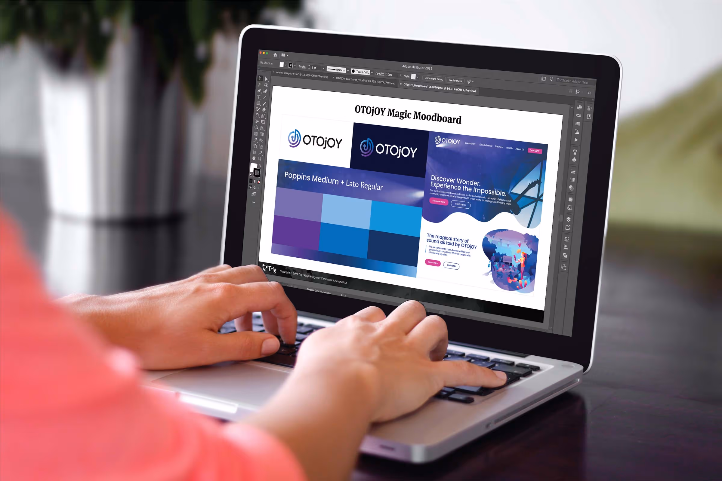 By starting the brand identity development process with our time-tested competitive brand analysis, we were able to contextualize the industry in which the brand would play. To do this, we explored and reverse-engineered the identities and strategies of the competitors and were able to discover where on the map OTOjOY should live for optimal brand differentiation. While OTOjOY had previous existing assets, in the review of these assets, we felt it was important to update both the messaging and visuals in order to bring them all into the new eventual refreshed brand and voice. To tie together OTOjOY’s mission of not just making hearing accessible to everyone, but to also enhance the hearing of those whose hearing aren’t impaired, we selected a competitively differentiated archetype of a Magician, an archetype that excels in the offering of truly transformative and magical experiences, with a dash of the Sage, the trusted advisor.